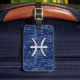 Pisces Zodiac Symbol on Navy Blue Digital Camo Luggage Tag