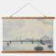 Camille Pissarro, Charing cross bridge, London, 1890. An old famous painting of a river with boats in soft tone grey and blue colours and an impressionism style. Printed on a wood-framed wall-hanging tapestry. CCO license, public domain art.
