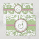 Green and Pink Lavender Damask Wedding RSVP Cards Pistachio Clover Damask Monogrammed Rose Petal Pink Personalised Wedding Response Cards
