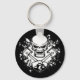 Badass motorsports skull and crossed pistons on splatter. B/W ink.