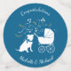 Include the big brother or sister fur baby in the celebration with this adorable Pit Bull dog baby shower design! Perfect for a puppy lover with a baby on the way. The Pitbull is next to an adorable vintage carriage. The blue makes it perfect for a baby boy on the way!