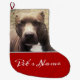 Pit Bull Dog Custom Pet Photo Customized Large Christmas Stocking makes a great gift idea for a pit owner. Choose your very own dog photo for the front of the stocking and pet's name is personalized in white calligraphy script lettering on lower front dark red area of stocking. Customize the red area to any color you wish.
