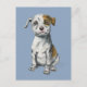 This work was done with pencil drawing and then coloured digitally with conte and pastel. It is a drawing of a pit bull puppy sitting with a smile on his face. He has a very soft look on his face. He is white with tan patterns.