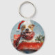 Pitbull Dog in Sledge Let it Snow Christmas Key Ring
