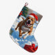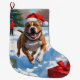 Pitbull Dog Running in Snow with Christmas Hat Large Christmas Stocking