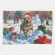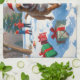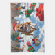 Pitbull Dog Running in Snow with Christmas Hat Tea Towel