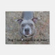 The message on this doormat says, "Dog Treat Required at Door." A wonderful image of a handsome Blue Nose Pitbull named Sarge is also shown on this doormat. Sarge is looking up at you with big wide eyes, ears flopping over his head and a comical expression on his face as he eagerly waits for someone to give him a dog treat.