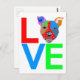 Colourful smiling pitbull face with letters L,V and E. Digital designs creating a patchwork pattern. Customise background colour.