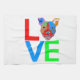 Colourful smiling pitbull face with letters L,V and E. Digital designs creating a patchwork pattern. Customise background colour.