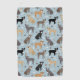 Cute Pitbull with black, fawn, brindle, blue and red coat colours with paw prints and dog bones pattern.