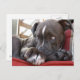 Cute photo of a pitbull puppy is featured on this postcard. A great way to keep in touch with family and friends!
