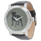 Illustration of a Pitbull in silhouette on a wrist watch. Pitbull image is transparent and can also be reduced if you wish to customise with text. Choose a font style, size and colour. Khaki background colour can also be changed by selecting edit, background. and choosing a colour from the chart, or click advanced, then choose the hex code for your colour selection. Select a different style of watch and band colour.