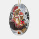 Pitbull dressed in Santa hats and posed with Sant's sleigh in colourful Christmas Scene is featured on a variety of Christmas ornaments for the tree.