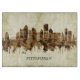Vintage Skyline of Pittsburgh, city in western Pennsylvania at the junction of 3 rivers