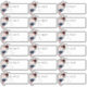 PixDezines pre-printed guest address labels are clear vinyl. The labels feature elegant watercolor bouquet of roses in Burgundy, Blush and Dusty Blue Roses and greenery foliage. All elements are adjustable, including the size of each label. This particular sheet contains 18 labels per sheet, label dimension is 4"x1.35".