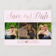 PixDezines fun script, a rose gold heart for your engagement photos for this save our date postcards, with DIY background colour and fonts.