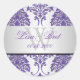 PixDezines florentius damask in purple on faux silver background, simply add monogram for this glorious wedding stickers (envelope sealers). DIY font and fonts' colours.