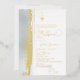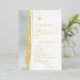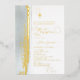 PixDezines Portuguese Batismo, featuring watercolor dusty blue brush stroke, a real gold foil cross and gold dust with luxury calligraphy script. All elements editable and removable.