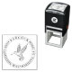 PixDezines calligraphy of hummingbird, a round return address, self-inking stamp. All elements adjustable and removable.