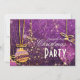 PixDezines Christmas ornaments, sparkling tree and party streamers on dark purple damask background. Flat card can be utilised as greeting cards.