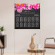 PixDezines rice paper lanterns in hot pink and mandarin orange on whimsical chalkboard (removable). Trendy wedding seating chart by numeric and Alpha... utilising poster stock.