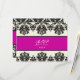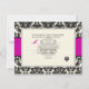 PixDezines Piqué Damask RSVPs (require 5x7 invitations) in black and off white which are customisable... We accented with hot pink... you can select from our convenient chart...