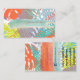 Pixdezines rainforest, retro bold tropical foliage, monstera, palm fronds, ferns, banana.. with removable aqua blue orange watercolor brush strokes. Want a little drama? Simply add contrasting background colour.