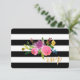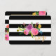 PixDezines bat mitzvah rsvp, black and white stripes are adjustable on DIY background colour with floral watercolor, ranunculus, peonies and mums.com. All rights reserved.