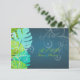 PixDezines rsvp Monstera, tropical foliage, in shades of aqua blue and lime green with customisable teal background, etc. Perfect card for any occasion : birthday, anniversary family reunion or for a destination wedding or just a family luau.