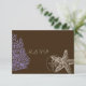 PixDezines rsvp, purple coral and star fish, sand and sea for a beach wedding or a clam bake party, your choice. Fully customisable, background, fonts, starfish, et al. Copyright © 2012 PixDezines.com™ and PixDezines™ on zazzle.com
