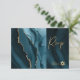 PixDezines modern art watercolor Agate in dark teal green. This design features Agate in shades of teal with faux gold veins. An RSVP for Bar Mitzvah, dazzled with silver Star of David.