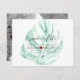 PixDezines watercolor monstera in seafoam green, stylish brush script, a greenery of tropical foliage save the date DIY background colour and a red heart. PixDezines dynamic designs allow you to edit any element on this invitation template.