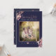PixDezines save the date cards with faux rose gold foil fall foliage and fun modern calligraphy script. DIY background colour, navy blue.