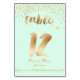 PixDezines gold brush strokes table number 12, with faux gold sprinkles and a DIY mint green background.