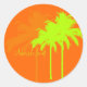 PixDezines neon green twin palms with DIY background colour and fonts.  Glossy sticker is perfect for any occasion as party favour seal or envelope sealers and return address all in one.