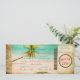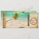 PixDezines vintage boarding pass for a destination wedding. Boarding pass to paradise with a hanging palm tree with removable vintage background.