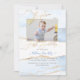 PixDezines Baptism 1st Birthday Invitation with photo, featuring pale blue watercolor Agate and sprinkled faux gold dust with modern calligraphy script.