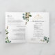 PixDezines Watercolor Greenery, Eucalyptus Baptism Program with luxury calligraphy script and a cross in faux gold. (LDS Baptism Program) All elements are editable, copy and paste.