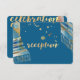 PixDezines reception cards featuring grunge watercolor talit in orange, blue trims accented with faux gold, silver and copper and star of david...on faux pearl.