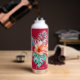 PixDezines water bottle, moody botanical, tropical paradise flowers - hibiscus, ginger, burgundy plumeria with palms and monstera foliage. DIY background colour, customise it with your favourite font. Copyright © 2022 PixDezines™. All rights reserved.