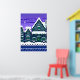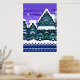A small quiet village in the snow with a purple sky, pixel art. This is a AI generated art.