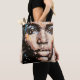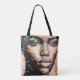 Pixel face design abstract feminine portrait tote bag