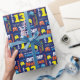 Modern text and pixelated graphics alien monster personalized age birthday gift wrapping paper, featuring graphic typography and your own name in orange, blue, gray, white and yellow. Personalize with your own name (please note not all names will fit due to the nature of the font) and age, currently reads Nathan 13, other name lengths are available, if you need assistance please contact me. Other matching items are available. Uniquely designed by www.mylittleeden.com only on zazzle.
