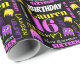Modern text and pixelated graphics alien monster personalised age birthday gift wrapping paper, featuring graphic typography and your own name in a purple, pink, white, yellow on black. Personalise with your own short name (please note not all names will fit due to the nature of the font) and age, currently reads Lauren 16 16th birthday. Other matching items are available. A great way to give a personalised touch to birthday gifts. Uniquely designed by Sarah Trett for www.mylittleeden.com only on zazzle.