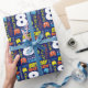 Modern text and pixelated graphics alien monster personalised age birthday gift wrapping paper, featuring graphic typography and your own name in orange, blue, grey, white and yellow. Personalise with your own name (please note not all names will fit due to the nature of the font) and age, currently reads Matthew 8, other name lengths are available, if you need assistance please contact me. Other matching items are available. Uniquely designed by www.mylittleeden.com only on Zazzle.