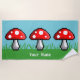 Pixel art fly agaric mushrooms in a field of green grass with a clear blue sky. Personalise by changing "Your Name" for your own name or custom words.