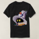 I give wanted to give this a 4 instead of a 5 because these Basic DARK T0shirts run unexpectedly SLIM or Narrow. Which is great if you do not have a potbelly, but I have a paunch. It isn't the shirt's fault that I've got a beer belly. The design and shirt itself is a quality cotton shirt. The color is more of a deep purple, but still a very pretty color. The Basic DARK T-shirts run a bit SLIMMER than the Basic Ts. The neck is a fraction narrower (or seems to be narrower) also. I'm a paunchy middle-aged woman and my neck is 12 inches (31cm) thick and the neckline fell about the same as in the photo of the man, and I had the desire to tug it a bit. So if you're a thick necked man or like loose shirts, be aware these are slimmer shirts. Once I get rid of my lockdown paunch it'll look great. The shirt washed well in cold water with no apparent bleeding. We don't have a dryer, so it hung dry. Did not shrink. Love the colors and the design. The design looks smaller on my shirt than it does on the model on-line. But still, it looks good on the shirt. The printing looks as it does on the model, just the size seems fractionally smaller. Washed garment in cold water, hung dry and design appeared unaffected.