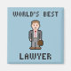 Pixel art image showing a lawyer and the words: World's Best Lawyer.