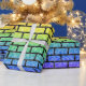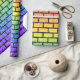 This fun and colourful design features a multicolored rainbow spectrum inspired brick wall pattern, with a pixelated look inspired by the appearance of 8-bit video games. Wrapping paper like this might be fun to use when giving gifts or presents to somebody who likes playing classic computer games.