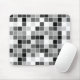 An abstract pixel pattern, many squares of equal size in various shades including black and white and shades of grey in between. in this version the "pixel" squares are outlined in white.
